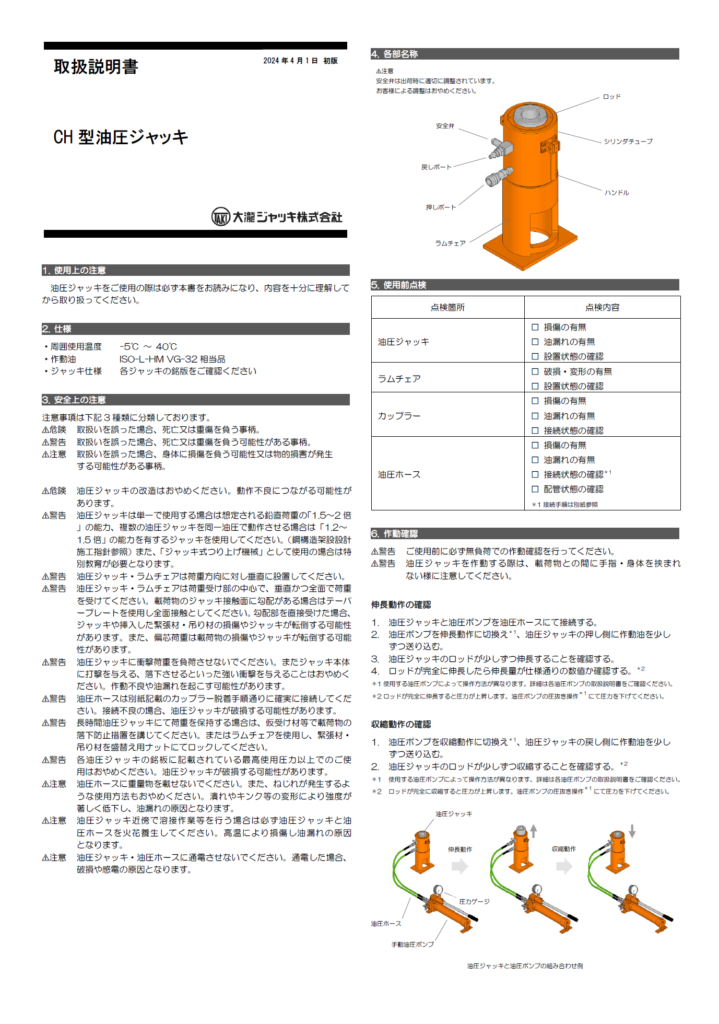 CH型油圧ジャッキ・ラムチェアの操作方法を説明します。