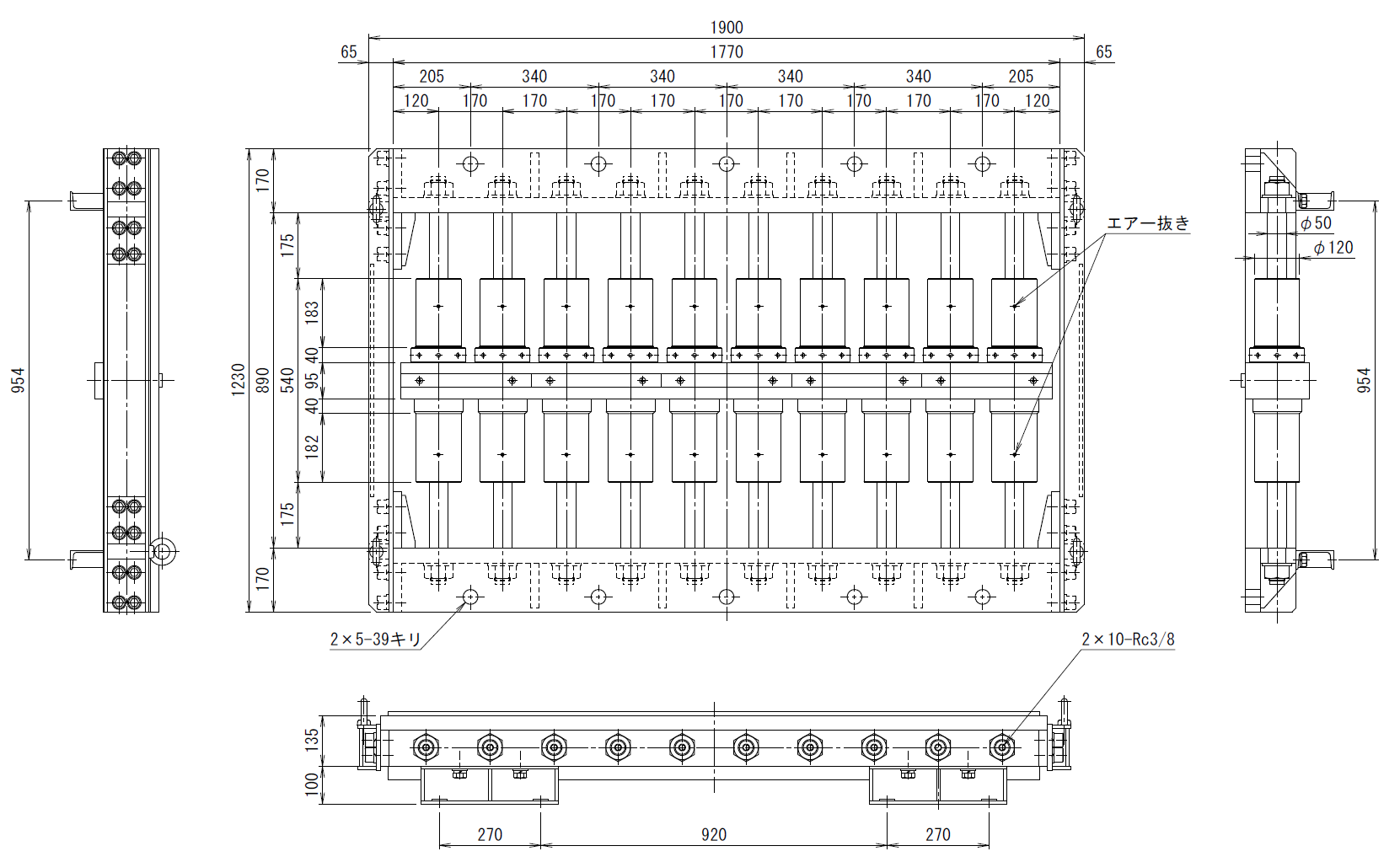 本装置と、操作盤、ポンプユニットの組み合わせで使用します。